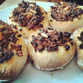 This recipe which hails from the Middle East, namely Lebanon, Syria and Palestine, is one of my favourites. It is also known as Arabic Pizza. The mixture of spiced meat is just to die for. These are basically like small meat pizzas with spiced meat. As base we use bread dough which turns nice and fluffy when cooked but ready-made pizza dough is fine. The meat mixture was genuinely made with ground mutton but nowadays it is made with ground lamb or ground beef or a mixture of both. So do give this recipe a go as everyone will love it. You will need...